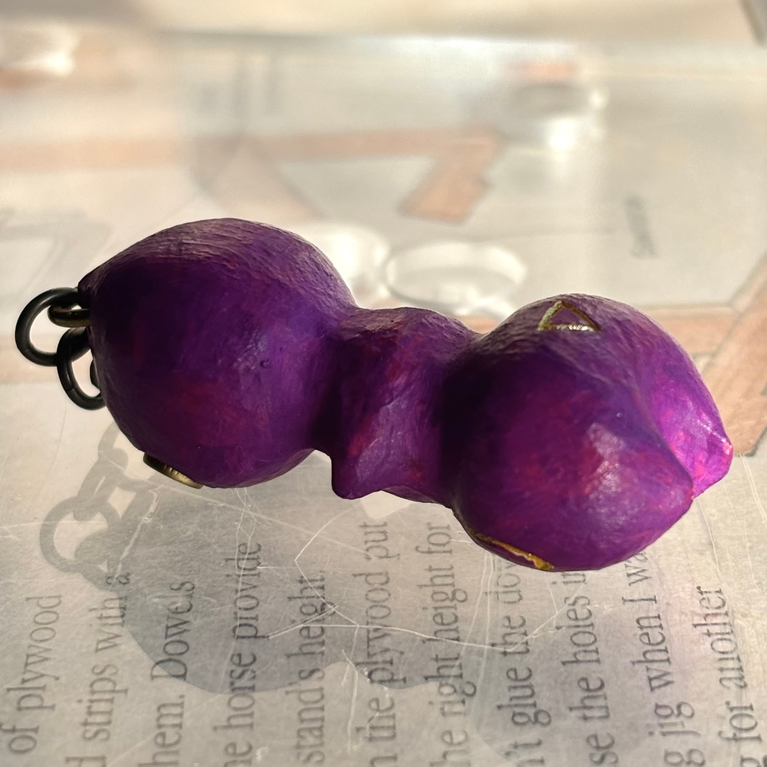 素材は桐材。アクリルガッシュを何色か塗り重ねてワイヤーブラシで擦って遺物っぽくしています。