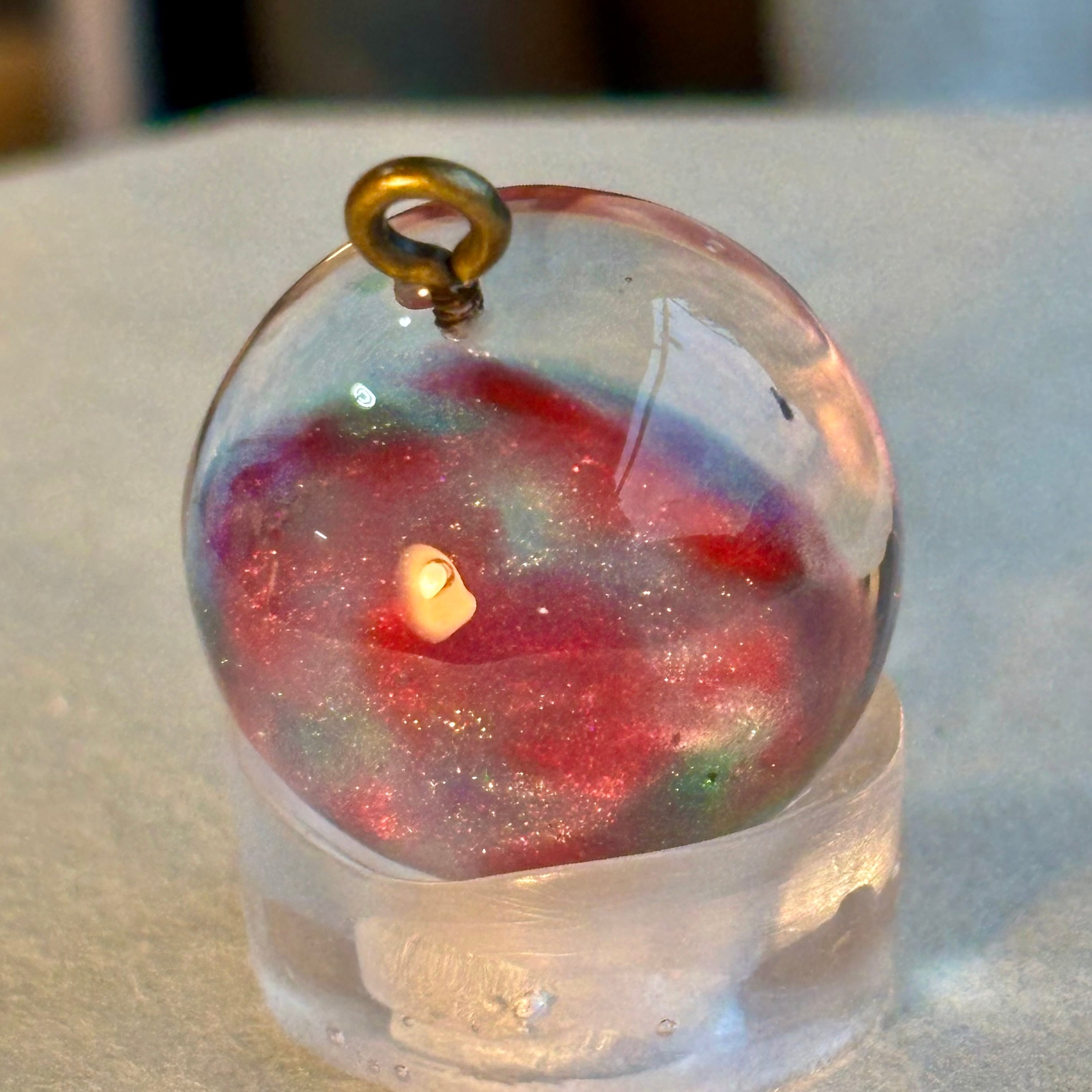 余計な気泡が入ってしまったワケあり品となります。このアイテムはいくらか気泡を残した方が雰囲気があって良いのですが、今回のものは半球を合体させる時に入り込んだ物でワケあり品となります。ただ画像は光源を工夫して目立たせましたが普段それほどハッキリ見えるものではないです。