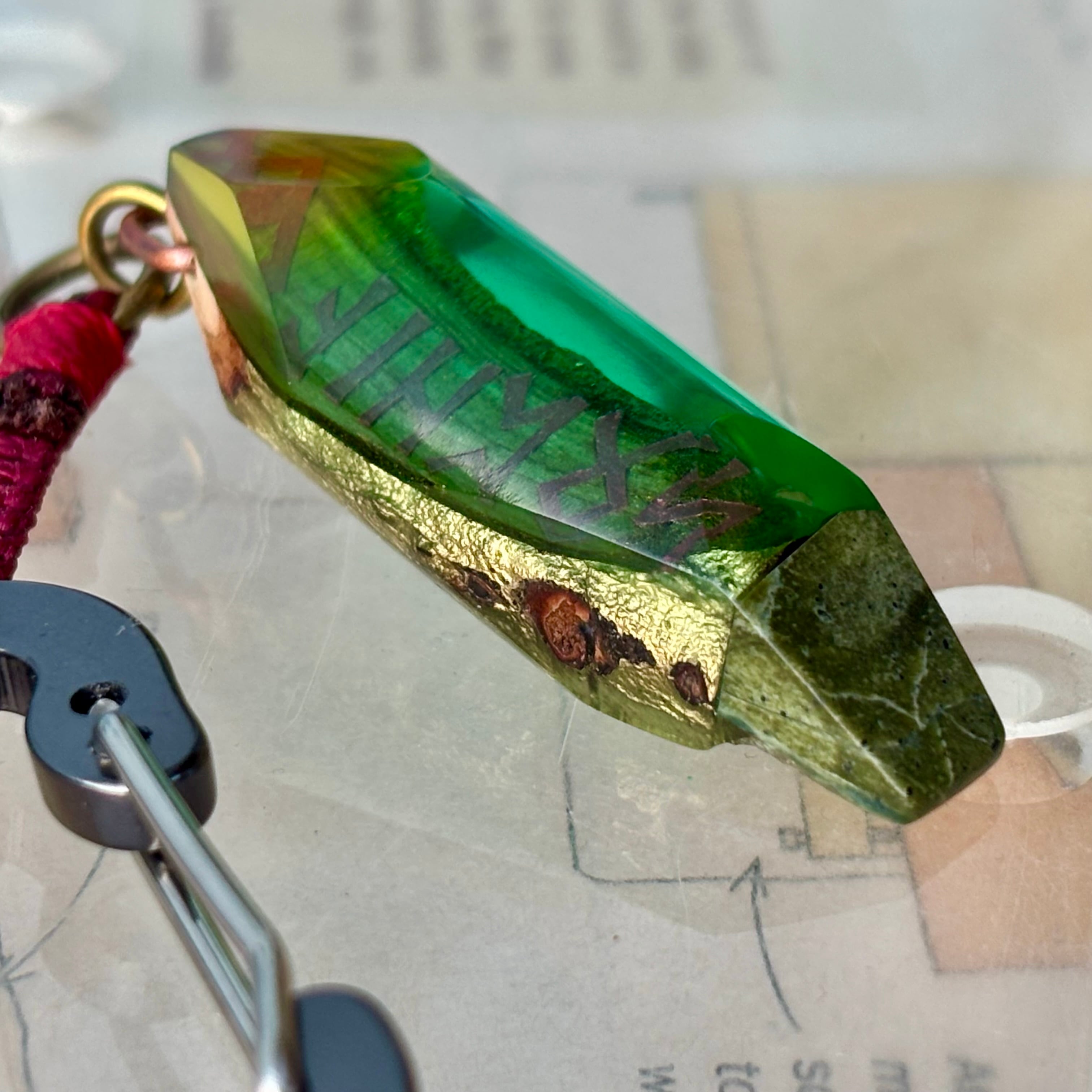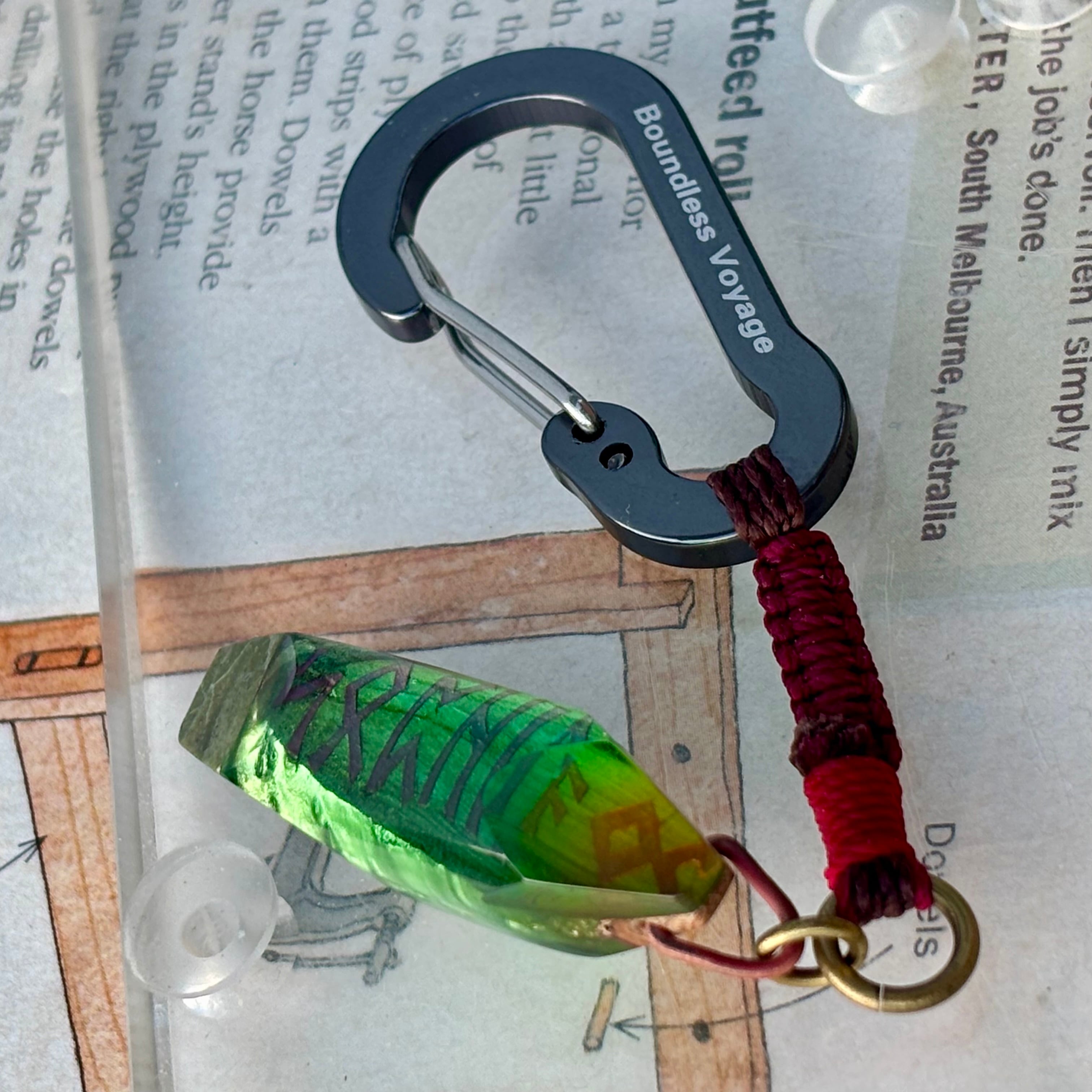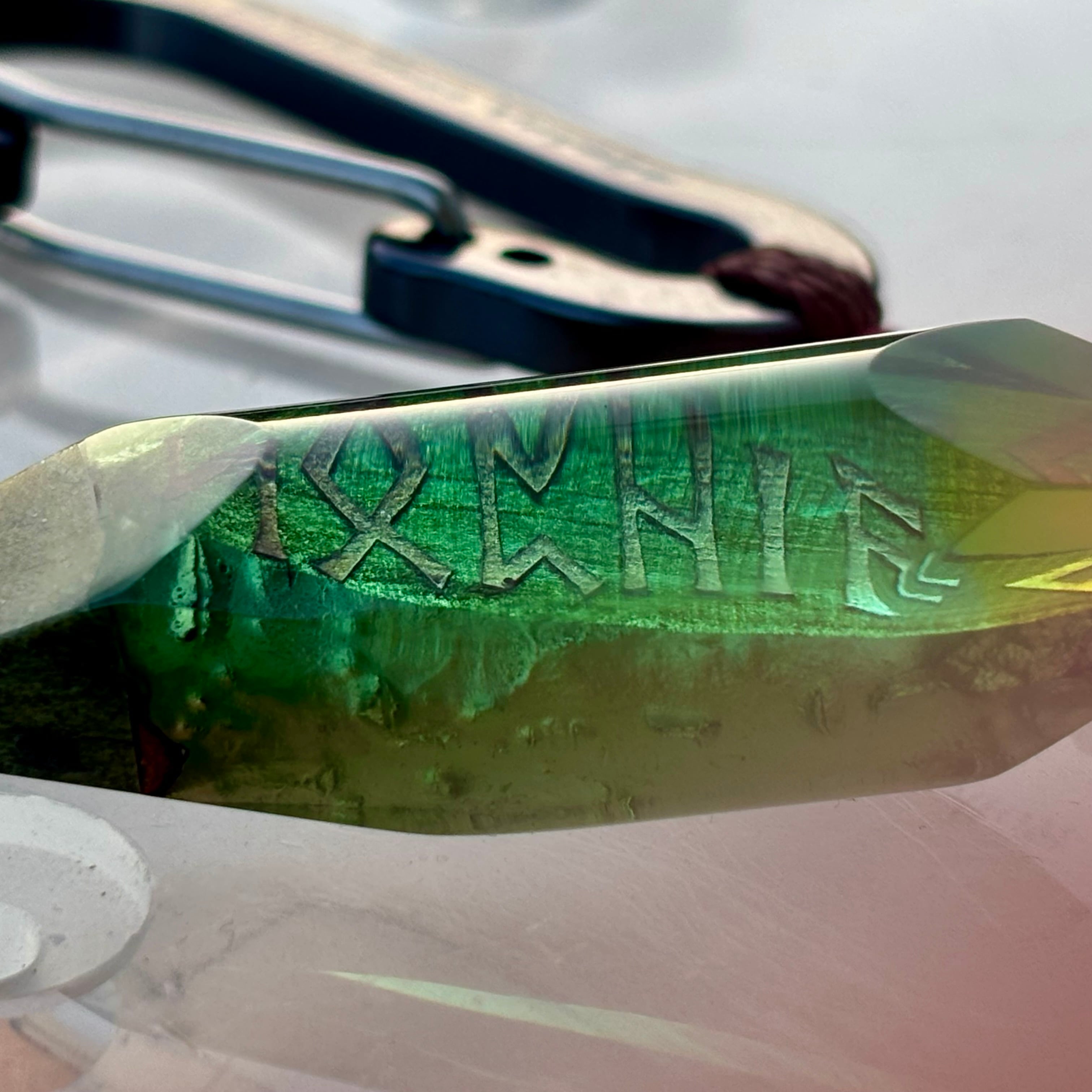 コナラの枝のウッドレジン ルーン文字 カラビナ