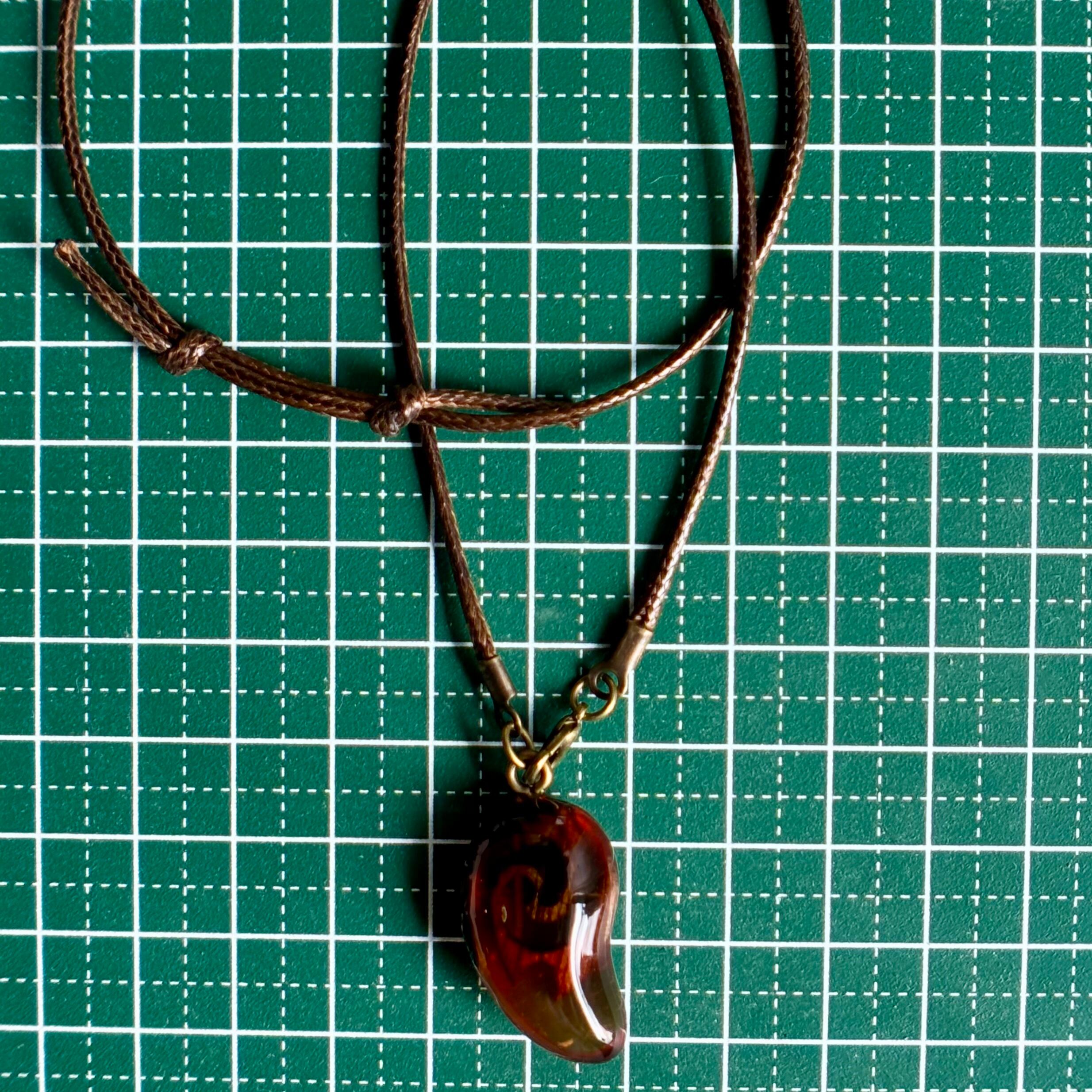 紐はワックスコード焦茶でチョーカーを想定した長さです。最大長さは40cmから短く調整出来ます。