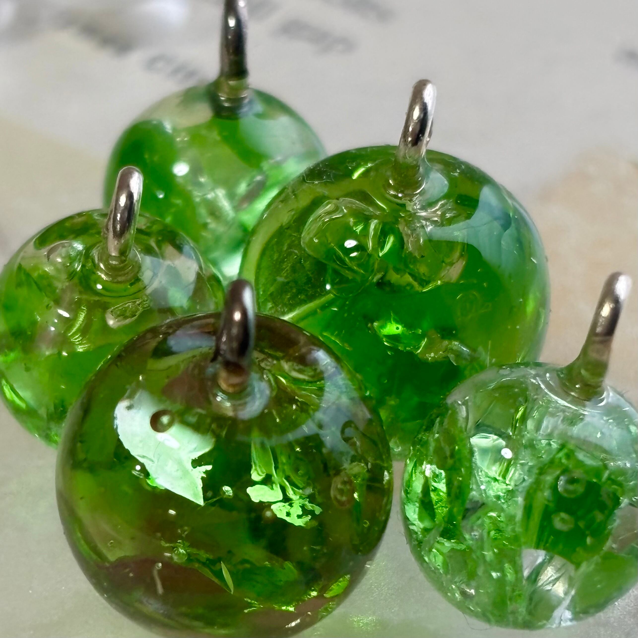 ガラスのかけらを封入した青りんご。